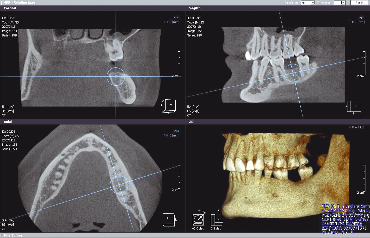 The ability to determine precisely how much bone is available for the placement of implants is an enormous help when planning cases and the level of safety and predictability that this degree of planning provides is also hugely reassuring for the patients involved.